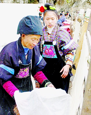 10月3日,一位苗族老人在揭紙。貴州黔東南苗族侗族自治州丹寨縣石橋村的古老手工造紙工藝遠近聞名。雖然現代造紙業越來越發達,但傳統的造紙工藝在這里一直保持完好。