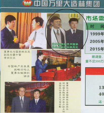 新宣傳冊中“萬里大造林”公司董事長陳相貴和國家林業局副局長祝列克的合影明顯變小了