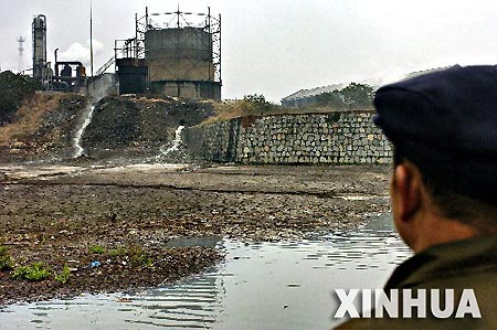 西洞庭湖邊一家化工廠正在排放污水