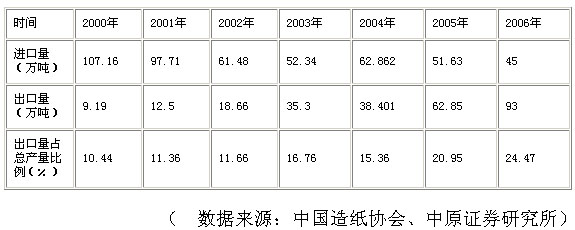 2006年,我國向美國出口銅版紙2.24億美元,據(jù)測(cè)算大致相當(dāng)于27萬噸,主要由晨鳴紙業(yè)和合資企業(yè)APP金東紙業(yè)生產(chǎn)。此外,太陽紙業(yè)也有一定的產(chǎn)能。