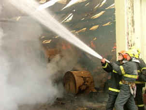 因為倉庫內堆放的瓦楞紙太多,所以要想盡早滅火就必須把成卷的瓦楞紙向外轉移。但是,由于單卷瓦楞紙的重量大多在一噸以上,單憑人力是很難將其移動的。為配合滅火,減少損失,家盛紙業公司派出了兩臺叉車。消防隊員用水槍壓制住兩個大門口的火勢后,叉車立即駛入倉庫把成卷的瓦楞紙向外轉移。就這樣邊滅火、邊轉移,到昨日下午3時30分左右,現場明火得以徹底控制。