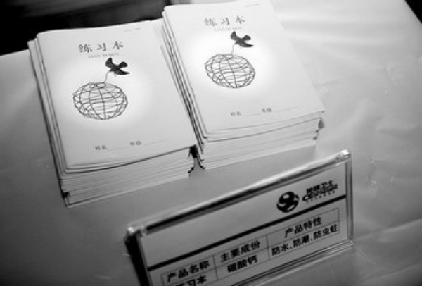 “我們的石頭紙還具有防水、堅固、不易燃燒等性能,更重要的是在整個制造過程中不用木漿和植物纖維,避免了對樹木的砍伐。”