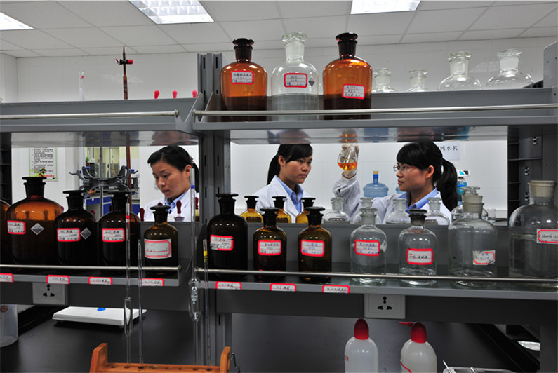 金桂漿紙員工在進行化驗作業