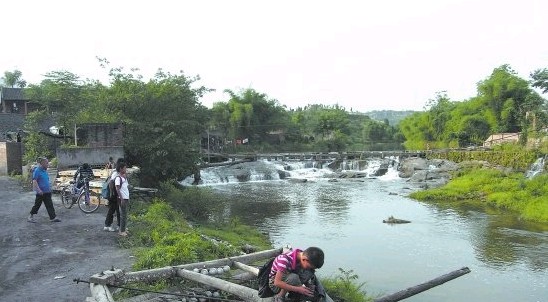 5月19日下午6時許,成都商報記者前往觀塘鎮梨子灘村,在一個山坳里,找到一處標注為“廣安市安琪日用品有限公司”的廠房。沿著鄉村道前行約200米,發現幾個背著書包的孩子正站在河邊玩耍。