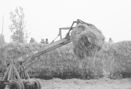 6月20日,濮陽縣郎中鄉西白邱村秸稈收購站內工人正忙著將秸稈裝車準備外運。麥收過后,該縣一些秸稈回收站開始回收小麥秸稈運往造紙廠,這不僅增加了農民收入,又避免了焚燒秸稈對環境的污染。