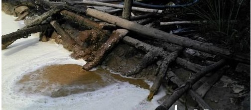 談到造紙的污水處理問題,老板介紹:“排出的廢水主要就是石灰、燒堿,我在河邊建了個污水池,污水往里面排。”