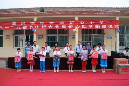 6月1日,日照市嵐山區高興鎮陳金榮僑心小學校園里歌舞翩翩,掌聲陣陣。來自山東亞太森博漿紙有限公司、陳江和基金會、日照市僑聯的領導和代表們,為該校孩子們送來了多媒體教學設備、書包、文具等,并與他們共同慶祝“六一兒童節”。