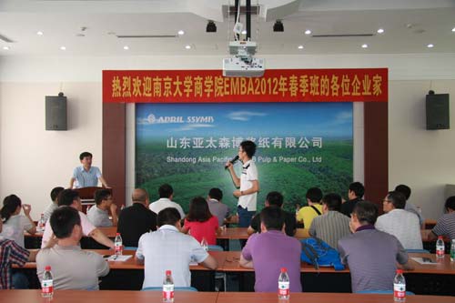 8月17日至19日,由南京大學商學院50余名EMBA企業(yè)家組成的代表團到山東亞太森博漿紙有限公司參觀考察,代表團一行參觀了該公司展廳、中控室、污水處理廠,并與相關(guān)負責人進行了座談。此次來訪的企業(yè)家涉及制造業(yè)、銀行、媒體、服務(wù)業(yè)等多個行業(yè)。