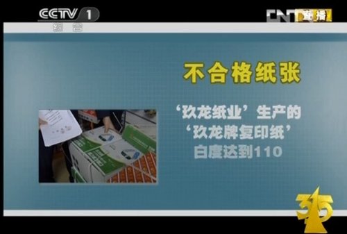 央視3·15晚會(huì)“政府在行動(dòng)”環(huán)節(jié)公布的資料顯示,2012年,廣東省工商局根據(jù)消費(fèi)者反映,對(duì)全省的復(fù)印紙進(jìn)行抽檢,有145款復(fù)印紙不合格。