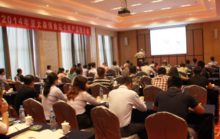 9月23日,亞太森博(山東)漿紙有限公司“2014亞太森博食品卡紙產品推介會”在日照嵐橋錦江大酒店舉行。來自全國各地的20余家貿易商和紙產品生產商的近40位企業代表參加了推介會。