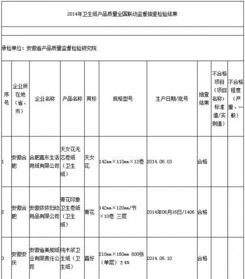 14日,安徽省質(zhì)量技術(shù)監(jiān)督局通報(bào)2014年衛(wèi)生紙產(chǎn)品質(zhì)量全國(guó)聯(lián)動(dòng)監(jiān)督抽查檢驗(yàn)結(jié)果,7批次產(chǎn)品經(jīng)檢驗(yàn)均合格。