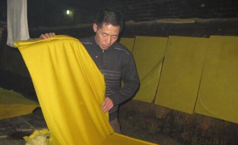 灘頭手工抄紙技藝以毛竹為原料,經過泡料、踩料、煮料、洗料、曬白、打料、撈紙、榨干、焙紙等10多道工序變成紙,這種手工紙又稱“土紙”。歷史上,土紙制作曾遍布灘頭,并由土紙演繹出灘頭年畫、色紙、香粉紙,即所謂的“灘頭三絕”。