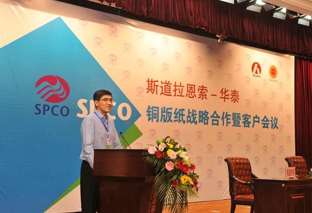 2016年7月8日,斯道拉恩索——華泰銅版紙戰(zhàn)略合作暨客戶會議在山東東營成功舉辦。會議期間,來自全國各地的50多位銅版紙客戶代表,與斯道拉恩索集團和華泰集團代表一起,共同見證了“蘇州紫興SPCO”品牌的轉讓儀式。斯道拉恩索集團蘇州工廠總經(jīng)理王自力和華泰集團總經(jīng)理魏文光代表合作雙方在品牌轉讓備忘錄上簽字。