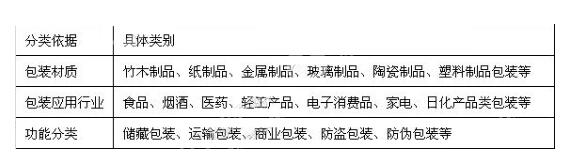 根據國家標準GB/T4122.1-1996中規定,包裝的定義是:為在流通過程中保護產品、方便貯運、促進銷售,按一定技術方法而采用的容器、材料及輔助物等的總體名稱,也指為了達到上述目的而采用容器、材料和輔助物的過程中施加一定技術方法等的操作活動。 隨著經濟社會的高速發展,商品日益豐富,現代社會已經到了“凡商品均需包裝”的程度。包裝不僅僅是在商品的貯存、運輸、銷售過程中起保護作用的一種容器,也是經濟和文化的結合體,它在保護產品的同時也推銷著產品的文化,好的包裝既是產品的載體,也是提升產品附加值的重要手段。 包裝行業產品分類情況