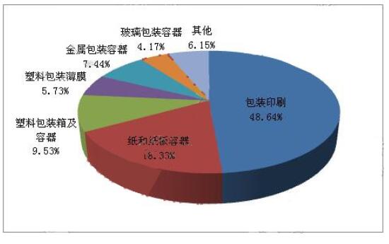 數據來源:中商產業研究院 改革開放以來,我國包裝產業實現了持續快速發展,中國已成為世界重要的包裝產品生產國、消費國以及出口國。我國的包裝行業已經形成了一個以紙包裝、塑料包裝、金屬包裝、玻璃包裝、包裝印刷和包裝機械為主要產品的獨立、完整、門類齊全的工業體系。中國包裝產業的快速發展不僅基本滿足了國內消費和商品出口的需求,也為保護商品、方便物流、促進銷售、服務消費發揮了重要作用。 目前,中國市場上應用最廣泛的是紙質包裝和塑料包裝產品,其次是金屬包裝和玻璃包裝。 包裝行業各細分產業構成占比