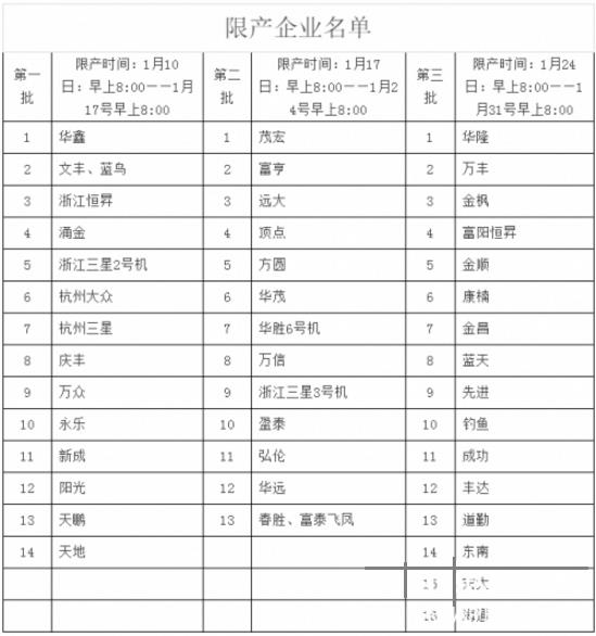 限產(chǎn)企業(yè)名單