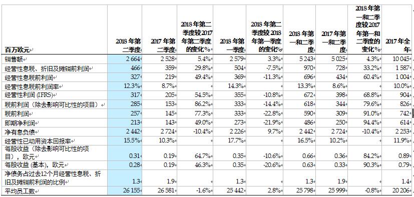 2018年第二季度(同比) 盡管面臨木材短缺,銷售額仍達(dá)到26.64億歐元,增長5.4%(去年同期:25.28億歐元),主要?dú)w因于有利的銷售價(jià)格與積極的產(chǎn)品組合管理。 盡管在木材采購與包裝紙板生產(chǎn)領(lǐng)域面臨暫時(shí)性困難,經(jīng)營性息稅前利潤(EBIT)仍增長49.4%,達(dá)到3.27億歐元(去年同期:2.19億歐元),主要?dú)w因于有利的銷售價(jià)格與積極的產(chǎn)品組合管理。 盡管股息發(fā)放有所增加,資產(chǎn)負(fù)債表仍繼續(xù)走強(qiáng),凈債務(wù)減少10%。凈債務(wù)為息稅、折舊及攤銷前經(jīng)營性利潤(EBITDA)的1.3倍(去年同期:1.9倍)。 經(jīng)營性已動(dòng)用資本回報(bào)率(ROCE)達(dá)15.5%(去年同期:10.3%),連續(xù)第四季度高于13%的戰(zhàn)略目標(biāo)。 斯道拉恩索公布了全新的凈債務(wù)占息稅、折舊及攤銷前經(jīng)營性利潤的比率目標(biāo)(小于2.0倍)以及債務(wù)占股本的比率目標(biāo)(小于0.6倍)。 2018年上半年(同比) 銷售額增長4.3%,達(dá)52.43億歐元。排除被剝離的Puumerkki公司,銷售額增長5.8%。 經(jīng)營性息稅前利潤達(dá)6.96億歐元,增長60.4%,主要?dú)w因于有利的銷售價(jià)格與積極的產(chǎn)品組合管理。 展望 2018年第三季度的銷售額預(yù)計(jì)將接近于2018年第二季度的26.64億歐元,經(jīng)營性息稅前利潤預(yù)計(jì)將接近于2018年第二季度的3.27億歐元。