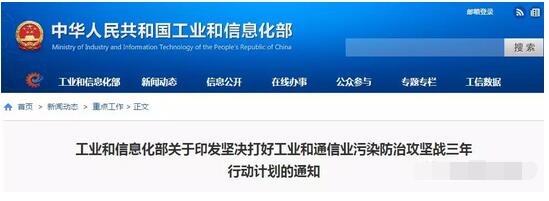 2018年7月23日,工業和信息化部印發了《堅決打好工業和通信業污染防治攻堅戰三年行動計劃》,明確到2020年,規模以上企業單位工業增加值能耗比2015年下降18%,單位工業增加值用水量比2015年下降23%。