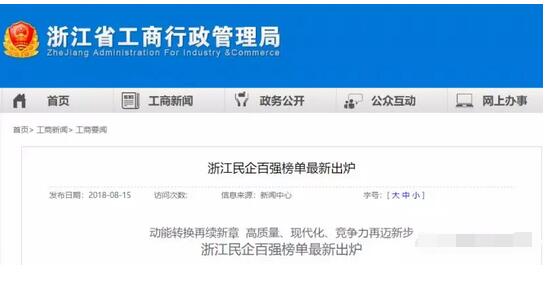 8月15日,浙江省工商局、浙江省工商聯(lián)、浙江省民營企業(yè)發(fā)展聯(lián)合會根據(jù)2017年度企業(yè)年報相關(guān)數(shù)據(jù),以企業(yè)年度營業(yè)收入為主要依據(jù),參考企業(yè)凈資產(chǎn)、納稅額、凈利潤等指標排名,發(fā)布《2017年度浙江省民營企業(yè)百強榜單》。