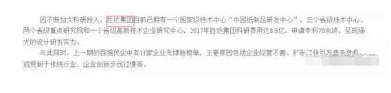 工商局發(fā)布的文件也指出:因不斷加大科研投入,勝達集團目前已擁有一個國家級技術(shù)中心“中國紙制品研發(fā)中心”,三個省級技術(shù)中心、兩個省級重點研究院和一個省級高新技術(shù)企業(yè)研究中心,2017年勝達集團科研費用達8.8億,申請專利70余項,呈現(xiàn)強大的設計研發(fā)實力。