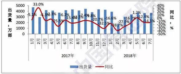6家預(yù)收款下降的酒企,降幅均超過30%,最高降幅達(dá)到80%。作為酒企龍頭的茅臺(tái),今年上半年預(yù)收賬款為99.40億元,較上期期末數(shù)減少31.11%;江蘇區(qū)域白酒今世緣預(yù)收賬款下降70%,從8.15億元降至2.37億元,今世緣稱主要原因是季節(jié)性因素。 智能終端:上半年手機(jī)銷量銳減17% 手機(jī)做為智能終端的主力,今年前七月銷量令人憂心。據(jù)中國信通院最近發(fā)布的數(shù)據(jù)顯示,2018年1-7月,國內(nèi)手機(jī)市場出貨量2.33億部,比下降17.3%。