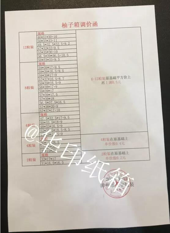 紙價(jià)作妖:玖龍報(bào)價(jià)4110-5630元/噸,紙板廠(chǎng)漲0.2-0.5元/平方 雖然正值“金九”旺季,距離中秋節(jié)和國(guó)慶節(jié)僅15-20天左右,但國(guó)廢和成品紙市場(chǎng)行情卻雙雙遇冷。旺季不旺的情況令諸多從業(yè)者信心不足,部分人士消極待市。華印小編據(jù)“紙去哪了研究院“為大家整理了玖龍幾大基地9月10日的報(bào)價(jià),發(fā)現(xiàn)玖龍瓦楞紙、灰底白板紙單價(jià)已難見(jiàn)5000元以上價(jià)格,高克重灰底白板紙報(bào)價(jià)已低至4110元/噸。而報(bào)價(jià)在5000元/噸以上的多為高端的白面或涂布牛卡紙。 廣東東莞玖龍紙業(yè):9月10日玖龍牌白面牛卡紙126g報(bào)5630元/噸,140g報(bào)5530元/噸,170g報(bào)5430元/噸;海龍牌白面牛卡126g報(bào)5530元/噸,140g報(bào)5330元/噸,170g報(bào)5230元/噸;玖龍牌涂布牛卡紙140g/150g報(bào)5530元/噸,170g報(bào)5430元/噸,200g報(bào)5330元/噸。 江蘇太倉(cāng)玖龍紙業(yè):9月10日地龍灰底白板紙250g報(bào)4510元/噸,350-400g報(bào)4310元/噸;江龍灰底白板紙240g報(bào)4310元/噸,300g報(bào)4210元/噸,350g報(bào)4110元/噸。(出廠(chǎng)電匯含稅價(jià)) 天津玖龍紙業(yè):9月10日玖龍瓦楞紙70g報(bào)4900元/噸,90g報(bào)4700元/噸,110g報(bào)4500元/噸,120-170g報(bào)4350元/噸;海龍瓦楞紙120g/130g/140g報(bào)4300元/噸。(含稅電匯出廠(chǎng)參考報(bào)價(jià)) 重慶玖龍紙業(yè):9月10日海龍白面牛卡紙140g報(bào)5450元/噸,170g報(bào)5300元/噸。(重慶地區(qū)出廠(chǎng)含稅電匯參考價(jià)) 而紙板價(jià)格方面,區(qū)域市場(chǎng)有回暖跡象。如福建地區(qū)的漳州市上宇包裝有限公司就因旺季來(lái)臨而訂單激增,近日接連發(fā)出了兩張漲價(jià)函。先是宣布9月8日起所有紙板上調(diào)5%,后又宣布9月12日起柚子箱上調(diào)0.2-0.5元/平方。這家公司的主要原紙供貨商為玖龍、聯(lián)盛、山鷹。