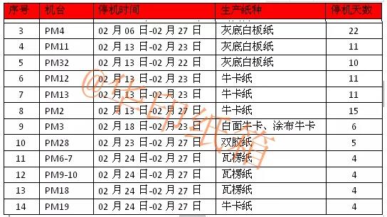 讓人意外的是,這已經(jīng)是今年玖龍紙業(yè)發(fā)布的第四輪年度停機(jī)檢修通知了。往年,玖龍紙業(yè)停機(jī)檢修均集中在春節(jié)期間,偶爾年中有一次,而今年除了春節(jié)(2-3月)常規(guī)停機(jī)外,6月、7月、8月、10月、11月旺季期間均有基地停機(jī)檢修。可以說,下半年玖龍幾乎每月都有基地停機(jī)檢修。截止目前,玖龍各基地已有40臺紙機(jī)進(jìn)行了輪流停機(jī)檢修。 第三輪停機(jī)檢修:2018年7月-8月 2018年7月16日,玖龍紙業(yè)宣布旗下東莞玖龍及太倉玖龍的16臺紙機(jī)從7月18日至8月20日期間,輪流停機(jī)檢修7-12天不等,涉及紙種為瓦楞紙、牛卡紙、灰底白板紙、文化紙。 第二輪停機(jī)檢修:2018年6月 2018年6月5日,東莞玖龍紙業(yè)宣布于6月對部分機(jī)臺停機(jī)檢修。其中生產(chǎn)牛卡紙的PM1從6月5日至6月10日停機(jī)檢修6天;生產(chǎn)灰底白板紙的PM11從6月5日至6月10日停機(jī)檢修6天;生產(chǎn)牛卡紙PM19從6月5日至6月10日停機(jī)檢修6天。 第一輪停機(jī)檢修:2018年2月-3月 涉及東莞、太倉兩個基地共計15臺紙機(jī),停機(jī)時長4-22天不等。 東莞基地:
