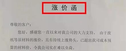 一、玖龍、理文等30家紙廠上調廢紙價,最高上調250元/噸 10月8日廢紙調價情況(截止7日下午4點,更多最新價格請登錄紙引未來網查看) 秦皇島金茂源紙業10月8日起廢紙上調,調后:a級2450,B級2350,C級2250。 廣水恒興雅都紙業10月8日起廢紙價格上調150:精包2350;超市2150;統包2050;花包1730。 太陽宏河紙業10月8日起廢紙價格上調150:外地Aa級2440,a級2380,B級2320,C級2090;內地Aa級2430,a級2370,B級2310,C級2080。 山西強偉10月8日起廢紙上調150,執行aa級純黃板2500,a級95%以上黃板2400,要求純干貨。 10月07日最高上調250元/噸 華東地區上調50-150元/噸。華南地區上調50-250元/噸。華中地區上調200元/噸。北部地區上調200元/噸。 山東昌樂世紀陽光紙業,箱板紙上調100元/噸。 山東濰坊匯勝紙業,廢紙價格上調100-150元/噸。 山東鄒城太陽宏河紙業,廢紙價格上調100元/噸。 山東聊城中治銀河紙業,廢紙價格上調100元/噸。 山東泰安泰和紙業,箱板紙上調50元/噸。 江蘇揚州永豐余紙業,周日,周一(10月7日,8日)停收兩天。 廣東東莞玖龍紙業,黃紙皮上調150元/噸。 廣東東莞理文紙業,一級紙、大統紙、統貨上調100元/噸。 廣東東莞金洲紙業,廢紙價格上調200元/噸。 廣東東莞銀洲紙業,廢紙價格上調200元/噸。 廣東東莞雙洲紙業,廢紙價格上調50元/噸。 廣東東莞中聯紙業,廢紙價格上調100元/噸。 廣東東莞建暉紙業,黃板A級、大統、統紙上調100元/噸,混合白紙、一級辦公紙上調50元/噸。 廣東中山永發紙業,廢紙價格上調150元/噸。 廣東中山聯合鴻興紙業,廢紙價格上調150元/噸。 廣東佛山金盛聯合紙業,廢紙價格上調150元/噸。 廣東江門豐達/明星紙業,停收一天。 廣東東莞順裕紙業,廢紙價格上調250元/噸。 廣東湛江吉城紙業,廢紙價格上調200元/噸。 河南新鄉亨利紙業,廢紙價格上調200元/噸。 河南順捷環保科技有限公司,廢紙價格上調200元/噸。 河北唐山樂亭張氏紙業,C、D級上調200元/噸。 河北唐山玉田森信紙制品(原昌泰紙業),廢紙價格上調200元/噸。 河北唐山玉田順發紙業,廢紙價格上調200元/噸。 河北永新玖龍紙業,箱板紙上調200元/噸。 天津玖龍紙業,箱板紙上調200元/噸。 遼寧沈陽玖龍紙業,箱板紙上調200元/噸。 遼寧興東紙業,廢紙價格上調200元/噸。 二、浙江、河北、安徽、福建、山東紙價漲100-200元/噸,廣東紙板上調0.06-0.14元/平方 河北省玉田縣順發實業有限公司:因受近日原材料價格持續增漲,生產成本急劇增加,經公司多方思慮決定自10月5日起所有品項及克重的成品紙每噸上調100元。 華發紙業(福建)有限公司:公司生產的產品成本大幅度上升,為了保證向貴公司繼續提供穩定、優質的產品和良好的服務,本公司高強瓦楞紙全部上調200元/噸。本通知自2018年10月5日起執行。 山鷹紙業銷售有限公司:因廢紙原料短缺,國廢成本上升,受經營壓力和生產成本等綜合因素影響,經研究決定自2018年10月4日起,我司各基地生產的瓦楞紙、T紙、紅杉牛卡紙在原價格基礎上統一上調200元/噸。 浙江省永嘉縣穗豐紙業有限公司:由于廢紙等原材料的漲價,且有持續上漲勢頭,已超出我司成本預算的材料價,令我司實在難以負荷。現經我公司股東會議決定自2018年10月4日起瓦楞紙價格上調200元/噸。 山東省寧津縣寶典紙業有限公司:長時間以來我公司一直承受著因原材料價格上漲而導致的生產成本的上升,及各種料價格的上漲以及因環保的不斷投入造成的成本增加,給公司的經營造成了很大困難,為了達到長期友好合作的目的,我公司不得不對紙管原紙價格上調100元/噸,自2018年10月5日開始實施。 揭陽市成豐紙業有限公司:經我司研究決定自2018年10月6日下午18:00開始價格進行上調,調整價格以報價表為準。 廣東省汕頭市萬欣紙業有限公司:由于原紙價格的上漲,導致我司的經營成本不斷增高,現決定自2018年10月5日中午12:00開始對紙板價格進行如下調整:(等通知生產的訂單一律不接) 三層紙板價格每平方上調0.06元; 四層紙板價格每平方上調0.08元; 五層紙板價格每平方上調0.10元; 六層紙板價格每平方上調0.12元; 七層紙板價格每平方上調0.14元; 廣東省揭陽市嘉林紙品有限公司:因原紙價格上漲,迫使我司成本加重。經公司研究決定,自2018年10月4日下午5點30分開始價格上調:(待通知生產的訂單一律不接) 三層紙板價格上調0.06元/平方米; 四層紙板價格上調0.08元/平方米; 五層紙板價格上調0.10元/平方米; 六層紙板價格上調0.12元/平方米; 七層紙板價格上調0.14元/平方米。 三、玖龍預言10月成品紙有一波漲價,行情真要旺了? 國慶假期即將進入尾聲,國廢價格在經歷恐怖的三天暴跌后,又在理文、玖龍等大型紙廠的帶動下,快速回升,越漲越瘋。包裝紙價格也在山鷹的帶領下,開始止跌反彈,10月行情似乎一改頹勢,轉而一片向好。難道真的如玖龍大哥9月業績發布會的預言,10月在“雙十一”的推動下,將有一波成品紙漲價潮? 據“紙業內參”分析,從7月份開始,包裝紙行情已經有明顯的掉頭趨勢,銷售不暢、庫存增加,更不要說漲價了。但是對后期市場的判斷,卻出現了兩種聲音,幾家大紙廠比較務實的成為了“看空派”,山鷹、景興、玖龍,都把三季度報表的盈利預期做了下調,能保住現有的利潤率就是目標。但是上游的廢紙商卻成為“看多派”,一方面今年上半年賺得盆滿缽滿,對市場有樂觀情緒;另一方面,外廢的進口量持續減少,讓他們看到了