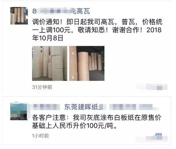 從9月下旬開始,廢紙、原紙價格上演逆轉再逆轉的行情,紙板價格也因此產生波動。如今國慶長假正式結束,紙品包裝產業鏈的價格動蕩仍在繼續。自10月4日至今,紙板廠陸陸續續開工復產,原紙、紙板價格也開始上漲。 一、原紙悄然提價 杭州富陽萬華紙業有限公司:由于受原材料緊缺,價格大幅上漲的影響,自10月9日起,我司生產產品的價格在原價基礎上漲100元/噸。