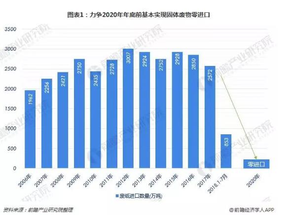 固廢進口禁令下,外廢或面臨零進口監管,對外廢進口數量和質量的限制力度都將達到歷史空前水平,這將直接影響我國造紙行業的發展。廢紙進口量將從2017年的2572萬噸下降至極低的水平,甚至為0。截至2018年7月我國廢紙進口僅853萬噸,同比下滑了49.8%。未來的進口額度仍將逐步縮減。