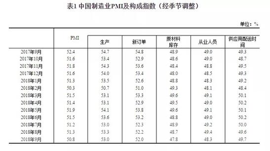 數據來源:國家統計局 從分類指數看,在構成制造業PMI的5個分類指數中,生產指數和新訂單指數高于臨界點,原材料庫存指數、從業人員指數和供應商配送時間指數低于臨界點。 生產指數為53.0%,比上月回落0.3個百分點,繼續位于臨界點之上,表明制造業生產增速有所放緩。 新訂單指數為52.0%,比上月回落0.2個百分點,但仍位于臨界點之上,表明制造業市場需求擴張步伐有所放慢。 原材料庫存指數為47.8%,比上月下降0.9個百分點,繼續位于臨界點之下,表明制造業主要原材料庫存降幅有所擴大。 從業人員指數為48.3%,低于上月1.1個百分點,位于臨界點以下,表明制造業企業用工量減少。 供應商配送時間指數為49.7%,比上月上升0.1個百分點,低于臨界點,表明制造業原材料供應商交貨時間繼續放慢。 不難看到,盡管上月我國工業處于“金九”,大量工業產品出現不同幅度的上漲趨勢,但仍然改變不了目前我國制造業生產不斷放緩,需求漸漸減少的態勢。這么看來,今年以來的嚴厲的環保檢查以及美國的瘋狂搞事還是對我國制造業造成了重大的影響。 從去年開始,所有企業面對中央環境保護督查組的環保督查熱度持續不減,在環保風暴下,絕大部分中小企業收到被限產、停產、關停的噩耗!據統計,目前我國已有17.6萬家工廠全被關停,工廠倒閉大半,您說生產指數怎么上去呢?而另一方面,中國出口到美國的成品制造商遭受了特別嚴重的打擊,減少了對原材料的采購。例如,美國對含有聚氯乙烯(PVC)的成品征收關稅,需求下降,導致中國國內價格在9月底一周內下跌9%,至9個月低點。 關注民生,因地制宜! 今年京津翼不再強制停工!