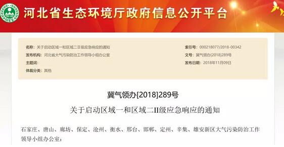 導語:11月9日,河北省大氣污染防治工作領導小組辦公室啟動區域一和區域二Ⅱ級應急響應的通知,14個市、區于11月12日-15日啟動應急預案,相關工業企業需停限產。 河北啟動重污染天氣應急預案,相關紙廠、紙箱廠將停限產
