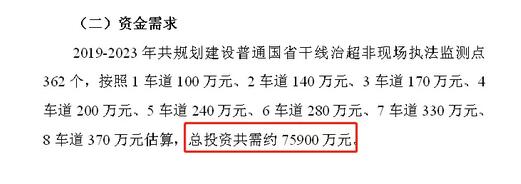 從官方發(fā)布的文件中可以看到,修建362個(gè)監(jiān)測(cè)點(diǎn)也是耗費(fèi)巨大,總投資大約要花費(fèi)75900萬(wàn)元,也就是7個(gè)多億!為了治超可以說(shuō)真的下了血本!