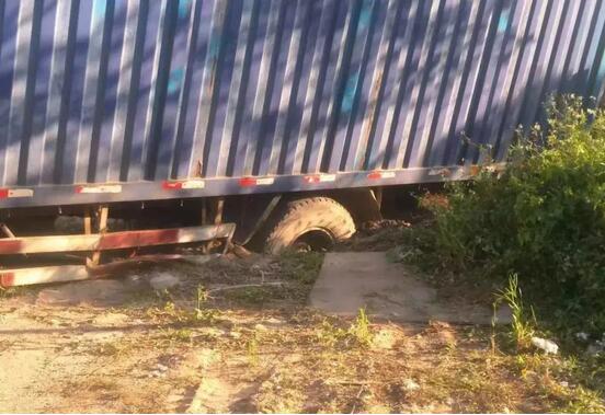 執(zhí)法人員上前出示執(zhí)法證件進(jìn)行現(xiàn)場(chǎng)檢查,發(fā)現(xiàn)涉事貨車車身向左傾斜,左后輪深深陷入泥坑中,車底下墊了一塊紙皮,還有鐵鏟、千斤頂?shù)裙ぞ撸梢娝緳C(jī)已實(shí)施過自救,但因貨車載物太重而無能為力。