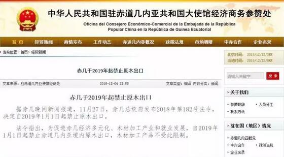 11月27日,赤幾總統(tǒng)府發(fā)布2018年第182號(hào)法令,決定自2019年1月1日起禁止原木出口。法令指出,為促進(jìn)赤幾經(jīng)濟(jì)多元化、木材加工產(chǎn)業(yè)和就業(yè)發(fā)展,自2019年1月1日起禁止赤道幾內(nèi)亞境內(nèi)原木出口,木材加工產(chǎn)品不受此限制。
