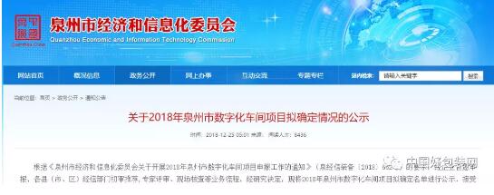 2018年12月25日,福建省泉州市經(jīng)濟(jì)和信息化委員會(huì)公示了2018年泉州市數(shù)字化車間項(xiàng)目擬確定情況,22家企業(yè)的項(xiàng)目通過初步審核。