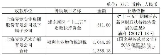 又一包裝印刷企業(yè)獲得政府巨額補(bǔ)助!1月4日,界龍實(shí)業(yè)發(fā)布公告稱,2018年1-12月,公司及下屬子公司累計(jì)獲得政府補(bǔ)助1356.18萬元。