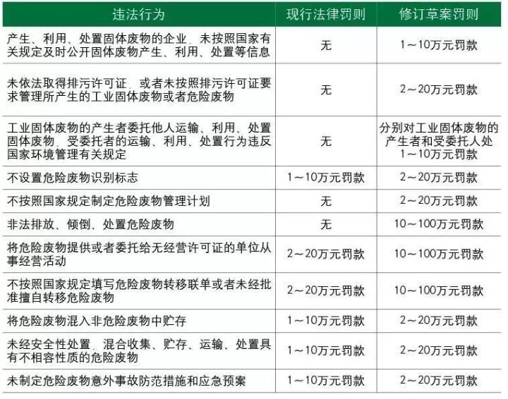 6強化法律手段 新增關于固體廢物查封扣押、停產整治的條款,增加針對固體廢物違法行為的行政強制措施。修改第五章“法律責任”,提高罰款額度上限。 《固廢法》修訂草案涉及罰款的主要變更點