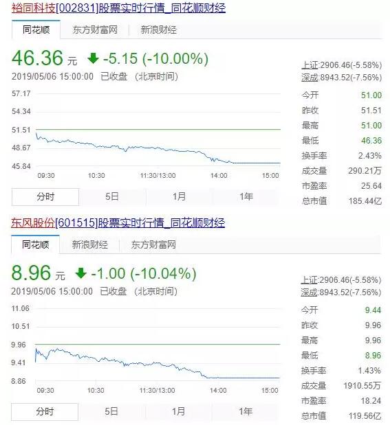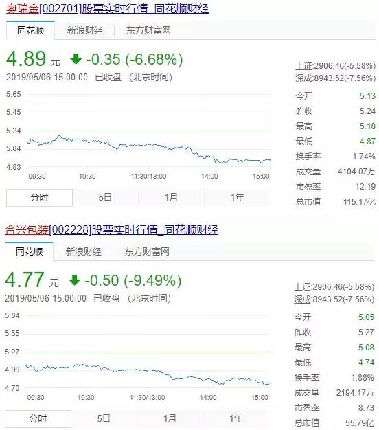 5月6日,全球市場再次開門黑,遭遇“黑色星期一”。中國A股成為重災(zāi)區(qū),通達(dá)信數(shù)據(jù)顯示,今日午盤A股總市值蒸發(fā)5.35%,約為3萬億。受此牽連,香港恒生指數(shù)開盤下跌2.46%,跌破3萬點(diǎn)。其中騰訊控股跌幅超4%,中興通訊跌幅接近13%。 下午三點(diǎn)收盤,A股三大股指收盤全線重挫,其中滬指下跌5.58%,退守2900點(diǎn)整數(shù)關(guān)口,收報(bào)2906.46點(diǎn);深成指下跌7.56%,收報(bào)8943.52點(diǎn);創(chuàng)業(yè)板指下跌7.94%,失守1500點(diǎn)整數(shù)關(guān)口,收報(bào)1494.89點(diǎn)。 受到A股恐慌性下跌的影響,在A股上市的印刷包裝企業(yè)全部遭受重挫,其中東風(fēng)股份、裕同科技、美盈森、合興、奧瑞金、勁嘉等排位靠前的上市公司均受到重創(chuàng)。