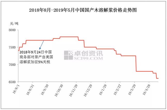 國務(wù)院關(guān)稅稅則委員會(huì)辦公室消息稱,2019年5月9日,美國政府宣布,自2019年5月10日起,對從中國進(jìn)口的2000億美元清單商品加征的關(guān)稅稅率由10%提高到25%。美方上述措施導(dǎo)致中美經(jīng)貿(mào)摩擦升級,違背中美雙方通過磋商解決貿(mào)易分歧的共識(shí),損害雙方利益,不符合國際社會(huì)的普遍期待。為捍衛(wèi)多邊貿(mào)易體制,捍衛(wèi)自身合法權(quán)益,中方不得不對原產(chǎn)于美國的部分進(jìn)口商品調(diào)整加征關(guān)稅措施。 根據(jù)《中華人民共和國對外貿(mào)易法》《中華人民共和國進(jìn)出口關(guān)稅條例》等法律法規(guī)和國際法基本原則,經(jīng)黨中央、國務(wù)院批準(zhǔn),國務(wù)院關(guān)稅稅則委員會(huì)決定,自2019年6月1日0時(shí)起,對已實(shí)施加征關(guān)稅的600億美元清單美國商品中的部分,提高加征關(guān)稅稅率,分別實(shí)施25%、20%或10%加征關(guān)稅。對之前加征5%關(guān)稅的稅目商品,仍繼續(xù)加征5%關(guān)稅。 溶解漿關(guān)稅不變 需求面仍是漿市走勢風(fēng)向標(biāo)
