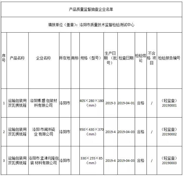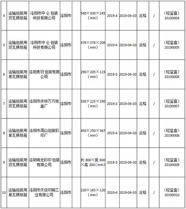 公告稱(chēng),本次共抽取9家生產(chǎn)企業(yè)10個(gè)批次的運(yùn)輸包裝用瓦楞紙箱產(chǎn)品,檢驗(yàn)結(jié)論均為合格。