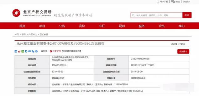 日前,岳陽(yáng)林紙股份有限公司在北京產(chǎn)權(quán)交易所以?huà)炫品绞睫D(zhuǎn)讓子公司永州湘江紙業(yè)有限責(zé)任公司100%股權(quán)及786,054,836.23元債權(quán)。