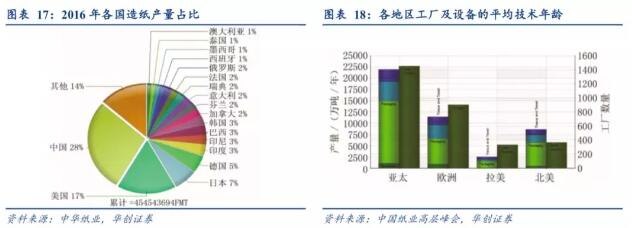 導語:廢紙系龍頭紙廠歷史上長期依靠進口外廢,“原料為王”決定企業盈利能力。隨著2020年外廢零進口的大限時間臨近,海外布局將成為企業應對外廢進口收緊后的必由之路。后外廢時代,成本優勢將決定紙廠的生死! 1、海外破局:為什么我國造紙企業選擇進軍海外? 造紙的先進技術依然蘊藏海外。根據費雪國際統計,對于運營工廠數不到400的北美地區,貢獻了全球年近1億噸的原紙產量,其中美國原紙年產量占全球的17%;此外,北美地區的工廠生產設備年齡接近35年(北美>歐洲>拉美>亞太地區),由此可以判斷北美地區造紙企業的工業規模和生產效率相較于亞洲地區仍然存在明顯的優勢,進軍海外除了獲取纖維含量更高的廢紙原料外,更能汲取西方先進紙企的生產經驗。