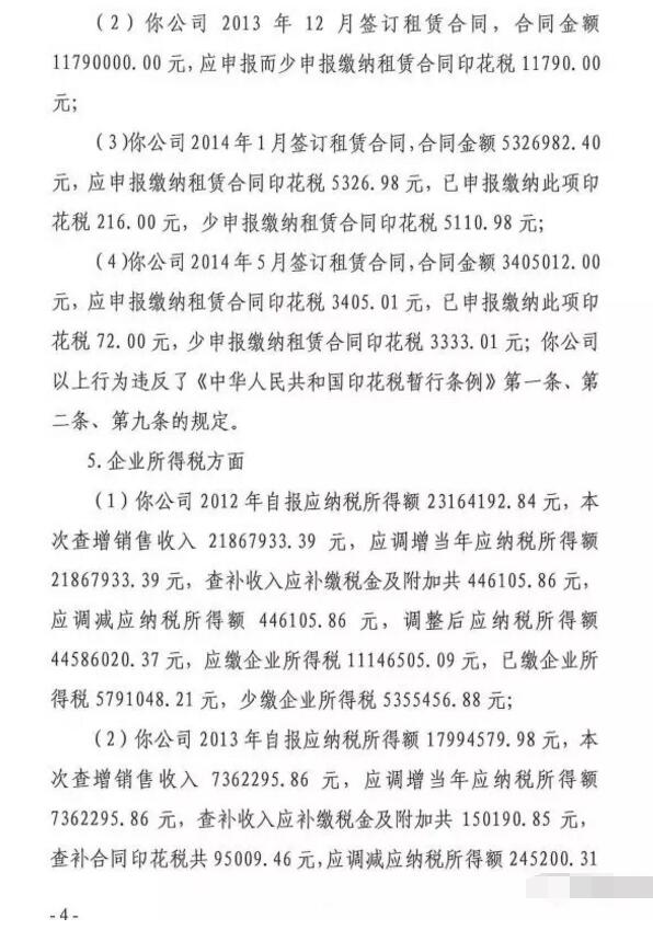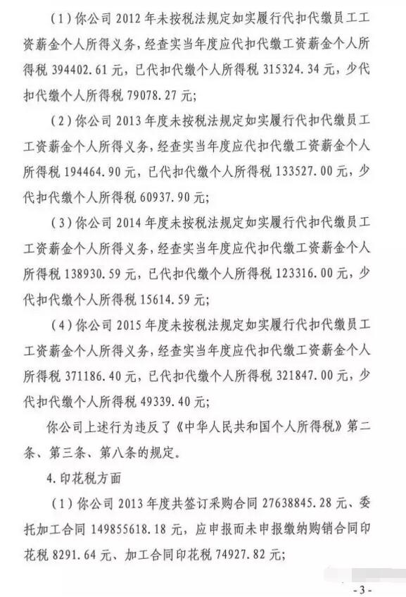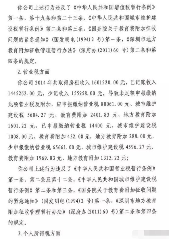 二、擬作出的處罰決定 1、根據《中華人民共和國稅收征收管理法》第三十二條、六十三條第一款規定: ①2012年度至2013年度,深圳市金之彩文化創意有限公司通過隱瞞銷售收入導致少繳增值稅和城市維護建設稅的行為是偷稅,擬追繳2012年1月2013年12月少繳的增值稅4,969,138.96元、城市維護建設稅347,839.74元,并處少繳稅款百分之五十的罰款即2,484,569.48元及173,919.87 元; ②2012年度至2013年度,深圳市金之彩文化創意有限公司通過隱瞞銷售收入、2014年少計租賃收入導致少繳當年企業所得稅行為是偷稅,擬追繳2012年度企業所得稅5,355,456.88元、2013 年度企業所得稅1,067,564.32元、2014年企業所得稅11,096.06元,處少繳稅款百分之五十的罰款即2,677,728.44 元、533,782.16元及5,548.03 元; ③深圳市金之彩文化創意有限公司取得租賃收入未足額申報繳納營業稅及城市維護建設稅的行為是偷稅,擬追繳2014年度營業稅65,661.00 元、城市維護建設稅4,596.27元,并處少繳稅款百分之五十的罰款即32,830.50元及2,298.13元; ④對深圳市金之彩文化創意有限公司2012年10月至2013年9月期間取得應稅收入5,517,036.45元,未按正確稅款所屬期申報增值稅的行為加收滯納金; ⑤對上述少繳稅款自稅款滯納之日起至稅款繳納之日止按日加收萬分之五的滯納金。 2、根據《中華人民共和國印花稅暫行條例》第一條、第二條、第九條的規定:①追繳深圳市金之彩文化創意有限公司2013年度印花稅95,009.46元;②追繳深圳市金之彩文化創意有限公司2014年度印花稅8,443.99元。 3、根據《國務院關于教育費附加征收問題的緊急通知》(國發明電(1994)2號)第一條,《深圳市地方教育附加征收管理暫行辦法》(深府辦(2011)60 號)第二條和第四條的規定,追繳2012年1月至2014年12月教育費附加151,044.01元、地方教育附加100,696.01元。 4、根據《中華人民共和國稅收征收管理法》第六十九條規定,對你公司2012年至2015年應扣未扣工資薪金個人所得稅的行為,擬處以少扣稅款百分之五十的罰款即102,485.08 元。 美盈森的說明 美盈森在公告中表示,深圳金之彩上述稅務違法行為主要發生在公司于2013年10月收購深圳金之彩70%股權之前,歐陽宣系時任董事長、法定代表人及大股東;且在稅務違法行為發生的所有期間,深圳金之彩均由歐陽宣擔任董事長、法定代表人及實際經營管理者。 歐陽宣系前述稅務違法行為的責任人,其依法依約應承擔全部責任。有關情況如下: 1、關于告知書所述隱瞞銷售收入的說明 在2012年、2013年期間,歐陽宣伙同深圳金之彩時任出納侯江穎通過侯江穎個人賬戶收取客戶貨款且未登記入賬。前述隱瞞銷售收入的行為發生在公司收購深圳金之彩70%股權之前,且公司及中介機構在對深圳金之彩進行收購盡職調查過程中,歐陽宣、深圳金之彩均未向公司披露,故意隱瞞了真相。 侯江穎亦是公司收購深圳金之彩股權轉讓方西藏新天地投資合伙企業執行合伙人、普通合伙人,其持有西藏新天地85%合伙股份實際是代歐陽宣持有。 歐陽宣等人因侵占上述未登記入賬貨款涉嫌構成職務侵占犯罪,深圳市公安局認為有犯罪事實發生,已立案偵查。 2、關于上述稅款追繳、滯納金及罰款追償等責任承擔的說明 美盈森2013年10月25日與西藏新天地、歐陽宣及深圳金之彩簽訂的《股權收購協議》“附件二、原股東和標的公司的陳述、保證及承諾”“10.稅務”明確了原股東(原股東系指西藏新天地及歐陽宣)和標的公司(標的公司系指深圳金之彩)關于稅務的保證及承諾,具體內容如下: “10.1 除已向投資人披露的情況外,標的公司已經根據法律及稅務機關的要求辦理稅務登記手續,及時、按規定辦理納稅申報手續,并及時、足額繳納稅款,不存在稅務的爭議,也不存在任何可能招致標的公司遭受處罰的其他情形。對于標的公司應繳納的稅款或可能承擔的稅收責任,標的公司已經在賬目中充分撥備或披露; 10.2 本協議簽訂以后,若標的公司因稅務問題受到稅務機關/財政部門的處罰(包括但不限于追繳稅款及滯納金、罰款),則原股東應承擔全部責任,并在標的公司受到稅務機關/財政部門處罰之日起 10 個工作日內將標的公司已經支付的相關款項支付給標的公司。為免生歧義,前述“稅務問題”包括由于以前享受的稅收優惠或返還/獎勵、合同補貼及財政補貼的行為被認定為無效而導致標的公司補繳稅款或退還已獲得的優惠;” 美盈森稱,公司將依據《股權收購協議》中原股東的承諾,在深圳金之彩收到稅務機關的處罰決定書后通知原股東履行承擔全部責任的承諾,并將稅務處罰決定書等材料作為原股東違約的證據提交深圳國際仲裁院(深圳仲裁委員會),提請裁決歐陽宣等違約并承擔相關責任。