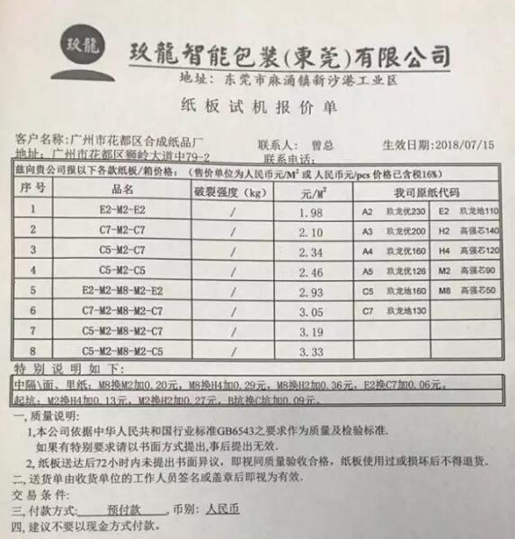 收購后,該集團將直接參與供應(yīng)包裝產(chǎn)品予客戶,并在包裝業(yè)上游及下游整合服務(wù)平臺方面產(chǎn)生協(xié)同效應(yīng),從而向客戶提供專業(yè)及個人化的包裝及全面綜合優(yōu)質(zhì)服務(wù)。上游及下游整合可向終端客戶提供一站式服務(wù),有利于穩(wěn)定包裝紙的質(zhì)量及售價以及建立良性競爭的包裝紙市場。 近年來,整條紙包裝產(chǎn)業(yè)鏈徹底由過去的增量市場轉(zhuǎn)為存量市場,由于產(chǎn)能擴充太快,包裝紙供大于求的局面一直得不到緩解,造成玖龍等包裝紙巨頭不得不降價求售,大大壓縮了贏利空間。 此次收購的發(fā)生,意味著玖龍向下游包裝印刷業(yè)亮出了底牌,原有的競爭格局將被打破,一些拼成本、拼走量的紙板和紙箱企業(yè)將首先面臨玖龍包裝的競爭。 猶記得一年前的7月20日,一張玖龍智能包裝(東莞)有限公司的《紙板試機報價單》低調(diào)流入市場,剎那間,整個珠三角的紙板及紙箱行業(yè)陷入了一片刀光血影之中。按照東莞紙板行業(yè)人士的估算,該報價與同行同等規(guī)格的至少低了10%,每平米價差達可達0.50元之多。