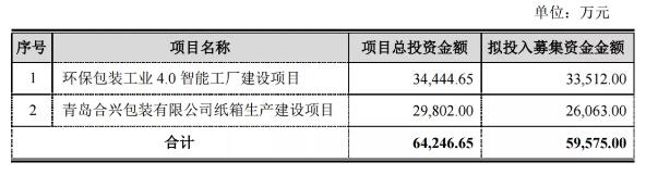 為進一步提升綜合競爭力,8月13日,合興包裝發布公告稱,擬發行可轉換公司債券募集資金總額不超過人民幣59575.00萬元,用于建設環保包裝工業4.0智能工廠建設項目及青島合興包裝有限公司紙箱生產建設項目。