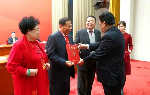大會由中國僑聯主席萬立駿主持。在會上,全國人大常委會副委員長白瑪赤林向金鷹集團主席陳江和頒發第五屆中國僑商聯合會榮譽會長證書。