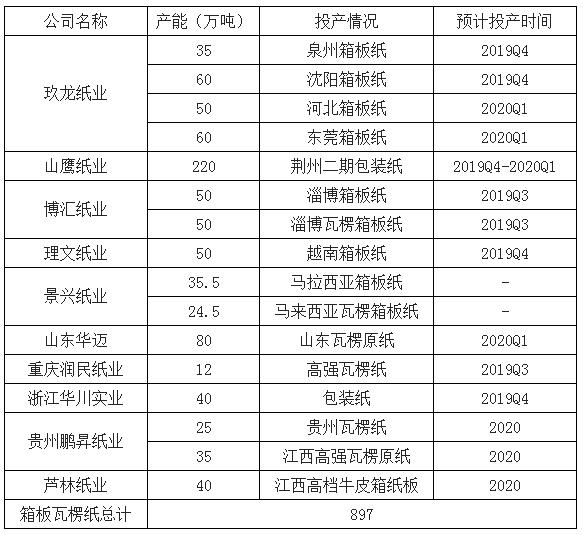 圖表來源:東吳證券研究所 箱板瓦楞紙投產(chǎn)情況