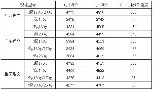 圖表來源:東吳證券研究所 高端箱板2019年下半年提價(jià)幅度略為領(lǐng)先。從7月以來價(jià)格提漲的幅度來看,3800-4400元價(jià)格區(qū)間的中高端箱板紙?zhí)醿r(jià)幅度相對較大,預(yù)期是外廢限制進(jìn)口后纖維不足導(dǎo)致供給壓縮所致。以理文造紙為例,理文箱板紙產(chǎn)品層級依次為H級、N級、Q級,H級為最高端箱板紙,10月-11月提價(jià)情況符合高低端價(jià)差擴(kuò)大的判斷。 高端箱板預(yù)期格局持續(xù)較好。長期來看,短期美廢配額稀缺、長期廢紙漿建設(shè)制約,高端箱板的競爭格局持續(xù)維持較為理想的狀態(tài),產(chǎn)業(yè)的進(jìn)入壁壘將逐漸由美廢額度轉(zhuǎn)向廢紙漿建設(shè)進(jìn)展,龍頭企業(yè)的原料優(yōu)勢明確。 箱板紙紙價(jià)與較7月以來最低點(diǎn)漲價(jià)幅度相關(guān)性