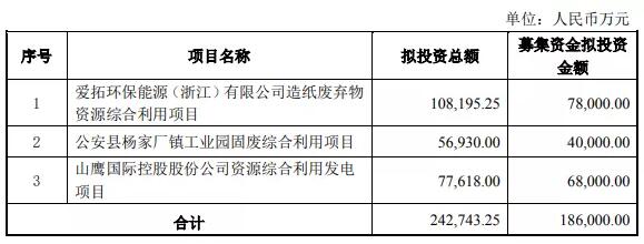 其中,“愛拓環(huán)保能源(浙江)有限公司造紙廢棄物資源綜合利用項(xiàng)目”由全資孫公司愛拓環(huán)保負(fù)責(zé)實(shí)施;“公安縣楊家廠鎮(zhèn)工業(yè)園固廢綜合利用項(xiàng)目”由全資子公司華中山鷹負(fù)責(zé)實(shí)施。為保障上述兩個(gè)募投項(xiàng)目的順利實(shí)施,提高募集資金的使用效率,公司擬以本次公開發(fā)行可轉(zhuǎn)換公司債券的募集資金分別向愛拓環(huán)保增資人民幣 7.8億元,向華中山鷹增資人民幣4億元。